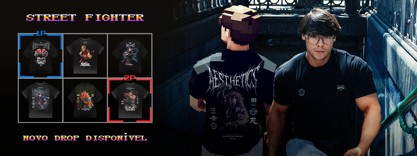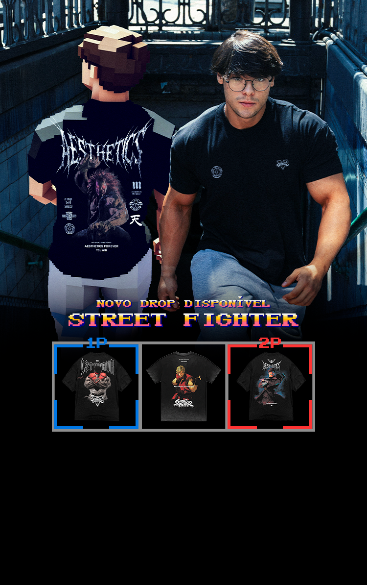 Camisetas: Oversized para um visual imponente e versátil, além da linha Dry Fit para treinos de alta intensidade, garantindo leveza, estilo e conforto.