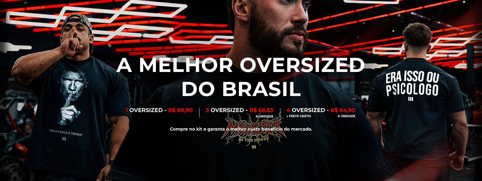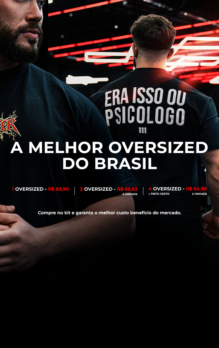 Camisetas: Oversized para um visual imponente e versátil, além da linha Dry Fit para treinos de alta intensidade, garantindo leveza, estilo e conforto.